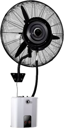 Voltage: 220V/50HZ; 110V/60HZ Material: Magnesium alloy 3 blades Grill: common grill Base: Black square frame Mist distance: 8-10m Mist particle size: 20-25 micron Air flow: 16000m³/h Affective area: 80-120m² Average water consumption: 8L/H Water inlet mode: automatic Water tank: 10L Plug: UK/EU/UL plug |